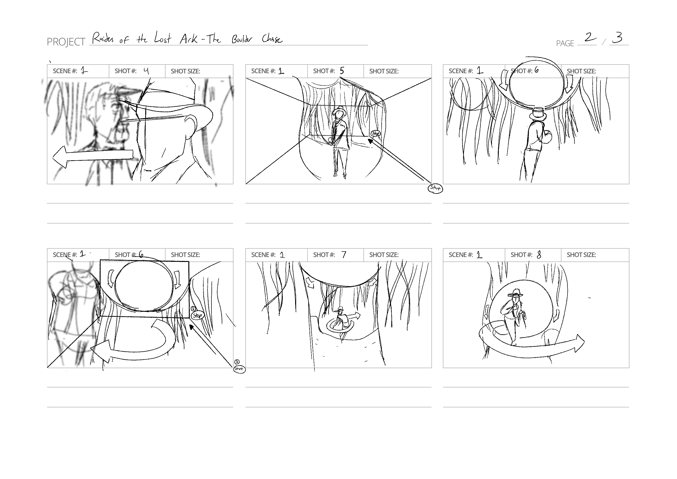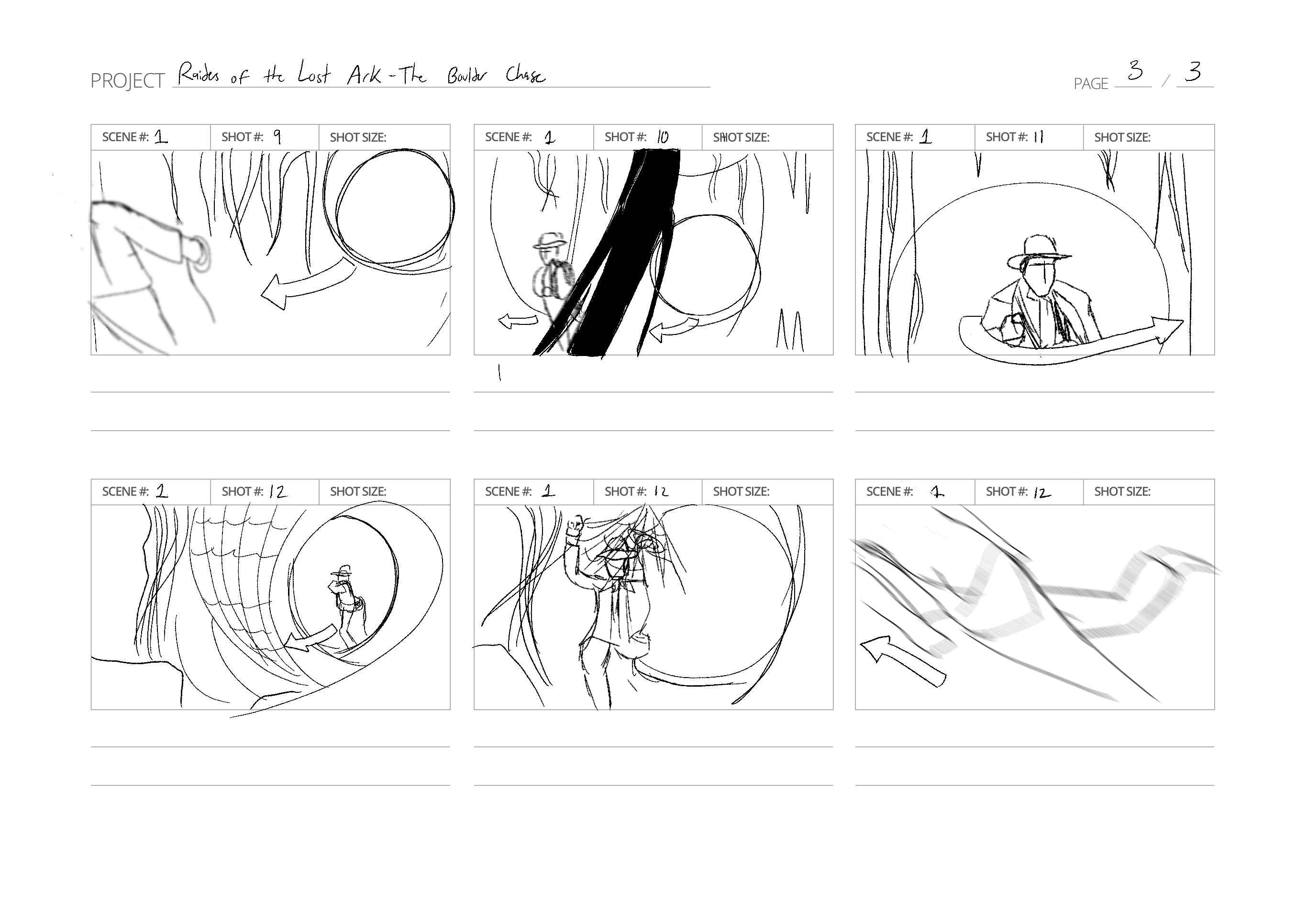 Some storyboarding practice with a scene from Raiders of the Lost Ark!